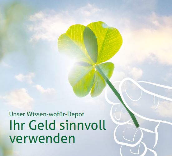 Mit unserem Wissen-wofür-Depot ist es noch einfacher, Geld sinnvoll einzusetzen und damit die nachhaltige Entwicklung unseres Landes zu fördern. Ihr persönlicher Gewinn dabei: ein Stück Zukunft.