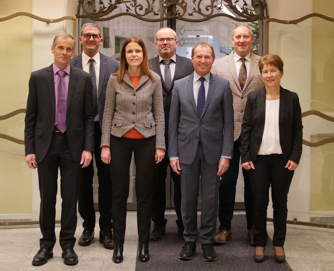 Vorne : Obmannstellvertreter Albert Platzgummer ; Dr. Marion Stampfer ; Obmann : Dr. Georg Wielander ; Rosa Katharina Staffler