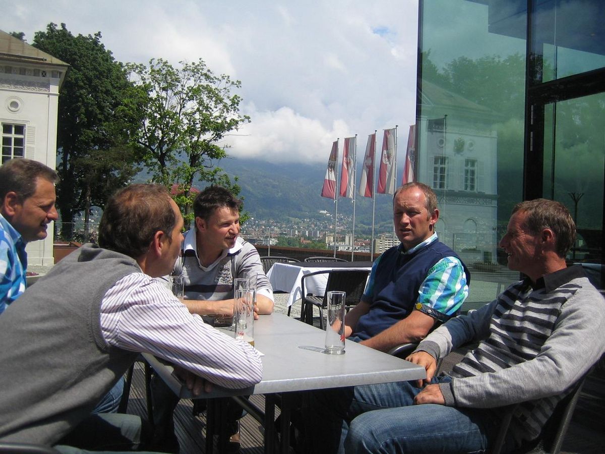 Nach einer genüsslichen Joghurtverkostung ging es heimwärts mit einer letzten Unterbrechung in der bekannten „Sachsenklemme“, wo bei einem Imbiss und Bier der interessante Ausflug seinen offiziellen Abschluss fand. Auf der Heimfahrt dankte der Senior der Gruppe, der Goyen Sepp, dem Obmann Stefan Klotzner und dem Geschäftsführer Klaus Gufler für die Organisation und Leitung dieses gelungenen Ausfluges, bei dem nicht nur viel Interessantes zu sehen war, sondern auch durch die Teilnahme von Mitgliedern aus Schenna, Verdins und Tall der Gesprächsstoff und die gute Laune nie ausgingen. Abschließend dankte Obmann Stefan Klotzner allen Teilnehmern für die Pünktlichkeit und die gute Stimmung und wünschte den Bauern wie den im Tourismus Tätigen ein gutes Jahr. Mit langem Beifall drückten die Fahrtteilnehmer ihren Dank für diesen schönen Ausflug aus, der sicher allen noch lange in Erinnerung bleiben wird.
