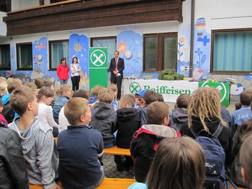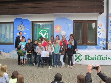 Der Geschäftsführer der Raiffeisenkasse Schenna Klaus Gufler nahm die Prämierung der besten Bilder vor. Wie auch in den vergangenen Jahren gab es heuer wieder einen Klasssenpreis, den die 4 A gewonnen hat und sich auf ein gemeinsames Eis essen freuen konnte. Der Überraschungsgast des Tages war ein Uhu, den Herr Campei Willy von der Pflegestation Dorf Tirol mitbrachte. Er erklärte den Kinder die Eigenschaften und die Lebensweise von Uhu´s und anderen wilden Vögeln und beantwortete die vielen Fragen der interessierten Kinder. Heuer wurden erstmals zusätzlich 2 Preise vergeben, für jene, die beim Quiz auf Landesebene gewonnen haben. Als kleine Jause zwischendrin spendierte die Raiffeisenkasse Pizza und Getränke für alle.