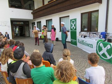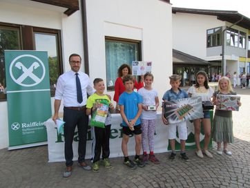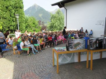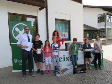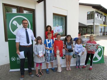 Kurz vor Schulende, an einem wunderschönen Donnerstag im Juni, fand im Schulhof der Grundschule Schenna die Prämierung des Malwettbewerbs der Schüler von Obertall, Verdins und Schenna statt. Fast 150 Schüler beteiligten sich am diesjährigen Wettbewerb zum Thema: „Freundschaft ist ….bunt!“. Am Beginn der Veranstaltung stand die Show des Künstler-Duos „Carpadiem“ auf dem Programm, die die Kinder mit großem Interesse, mit staunenden Augen und lautem Gelächter verfolgten. Mit großem Applaus verabschiedeten sie das Künstlerpaar und blickten gespannt auf die Prämierung der Sieger, die vom Geschäftsstellenleiter Schweitzer Ulrich, Frei Maria und Lösch Birgit vorgenommen wurde. Zusätzlich wurde ein Preis für den landesweiten Quizsieger Unterthurner Felix vergeben. Die Sieger-Bilder des Malwettbewerbs sind in der Raiffeisenkasse ausgehängt und können noch einige Wochen begutachtet werden. Bei dieser Gelegenheit bedankt sich die Raiffeisenkasse Schenna bei der Jury und allen Lehrpersonen für ihren Beitrag zum guten Gelingen der Veranstaltung.
