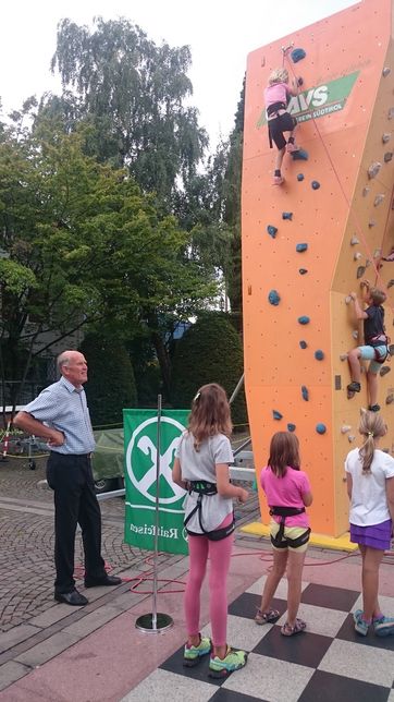 Durch die großzügige Unterstützung der Raiffeisenkasse Schenna konnte der AVS Sektion Schenna auch heuer wieder die mobile Kletterwand anmieten, um vielen Kindern die Möglichkeit zu geben ihre Kletterkünste zu zeigen und der ASC Sektion Fußball das Dart-Fußballspiel ankaufen, bei dem sich viele Einheimische und Touristen beteiligten und bei zielsicheren Treffern kleine Sachpreise mit nach Hause nehmen konnten.