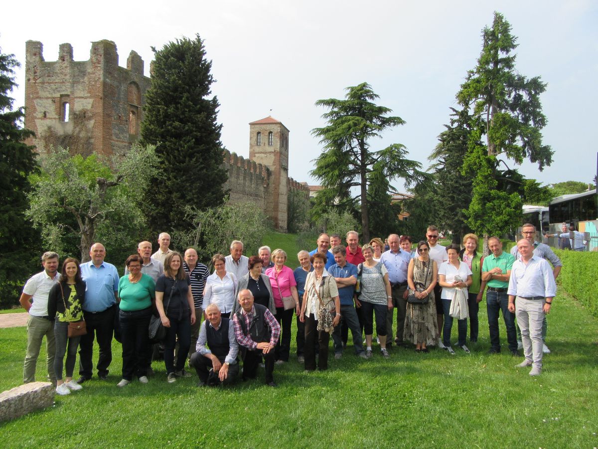 Bei herrlichem Wetter wurde am Vormittag das kleine private Weingut Cà Bottura in der Nähe von Bardolino besichtigt. Nach einer kurzen fachkundigen Einführung zu den Eigenheiten der Bodenbeschaffenheit und der darauf biologisch produzierten Weinen konnte die Gruppe eine Auswahl typischer Weine verkosten und hatten auch die Möglichkeit biologisch produzierte Olivenöle aus eigenem Hause zu probieren.