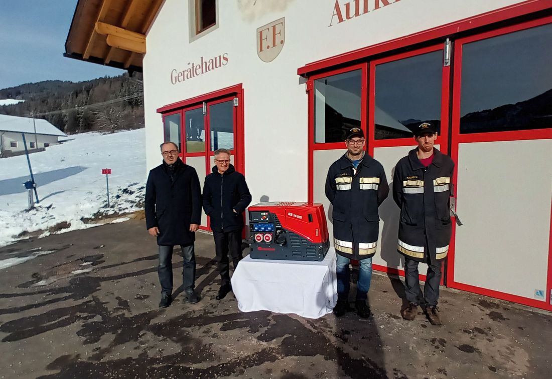Die Raiffeisenkasse Toblach unterstützt den Ankauf eines neuen Stromaggregates für die Freiwillige Feuerwehr Aufkirchen.