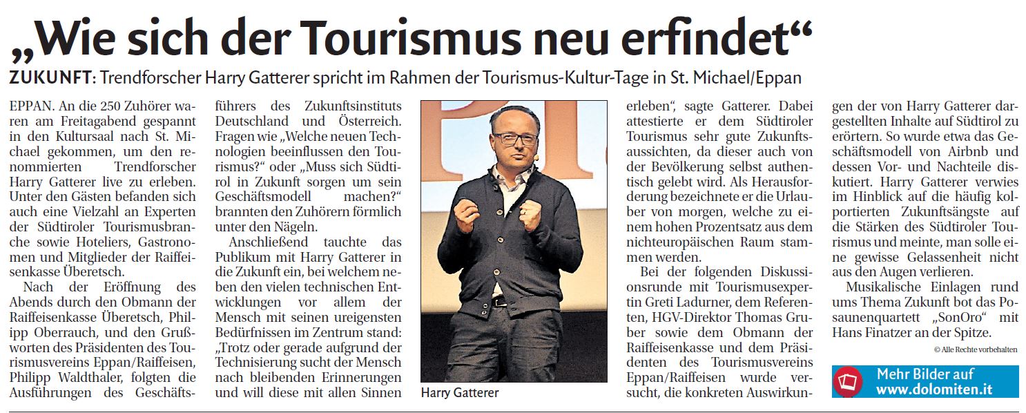 • Dolomiten - 11.04.2017 - "Wie sich der Tourismus neu erfindet"