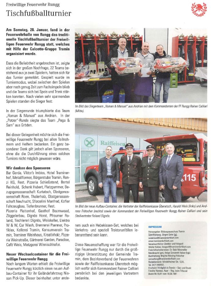 • Traminer Dorfblatt - 24.02.2017 - "Freiwillige Feuerwehr Rungg"