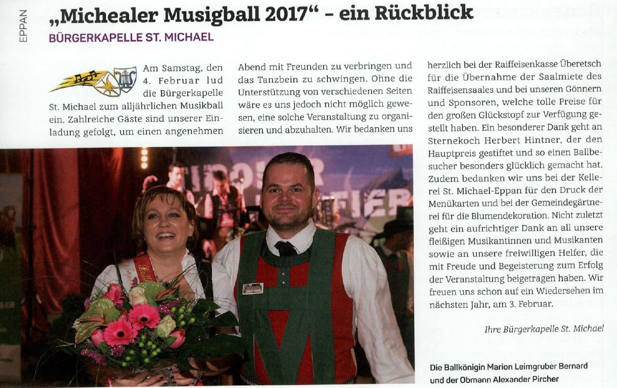 • Überetscher Gemeindeblatt - 17.02.2017 - "Michealer Musigball 2017 - ein Rückblick"