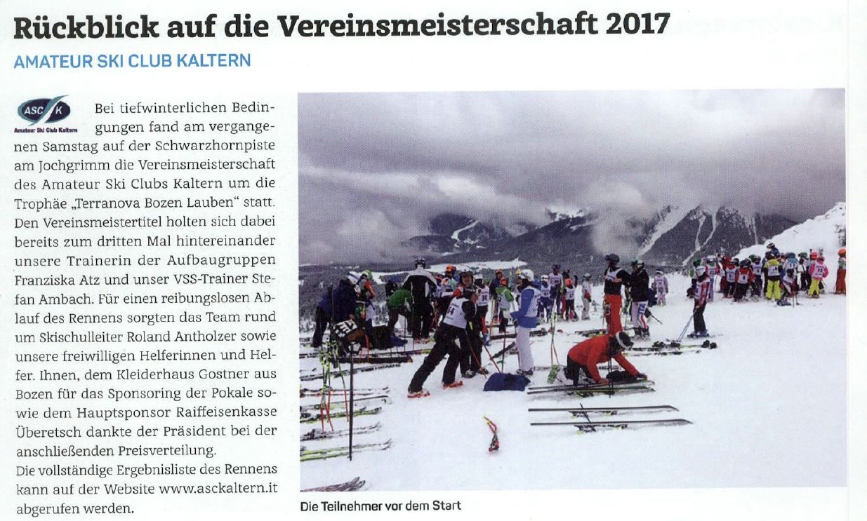 • Überetscher Gemeindeblatt - 17.02.2017 - "Rückblick auf die Vereinsmeisterschaft 2017"