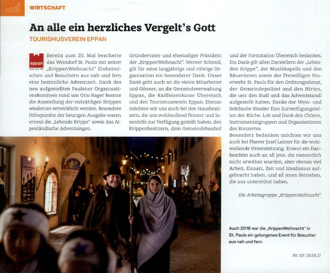 • Überetscher Gemeindeblatt - 20.01.2017 - "Ein herzliches Vergelts Gott"