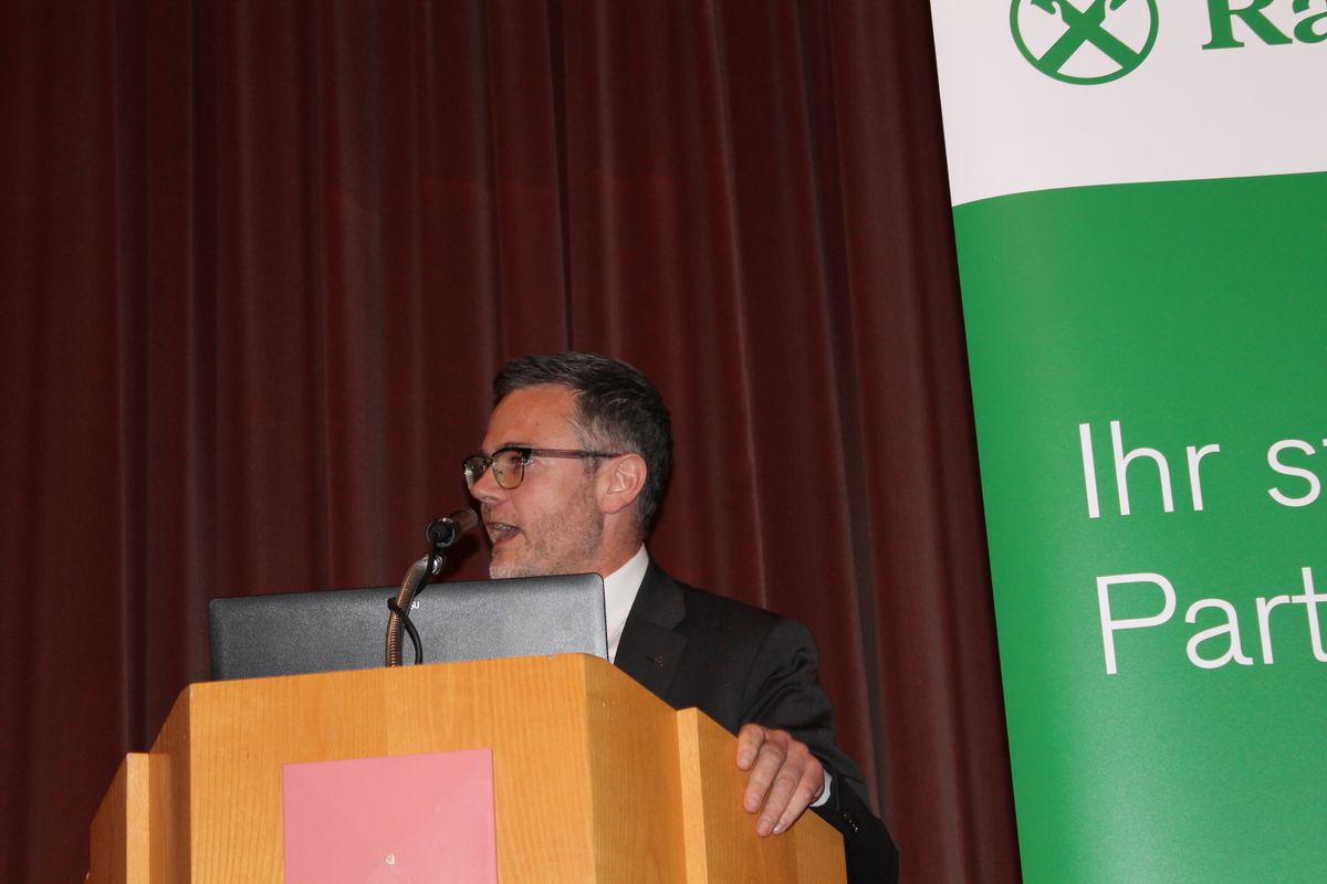 Ein herzlicher Dank geht an den Gastredner Dr. Michael Obrist, Leiter der Hauptabteilung Recht im Raiffeisenverband Süditrol, der während der Wahlgänge zum Thema "Reform der Raiffeisenkassen" referierte. Seine Ausführungen wurden gespannt und interessiert verfolgt. Den Mitgliedern bot sich die Gelegenheit, Informationen aus erster Hand zu erfahren und offene Fragen zu stellen.
