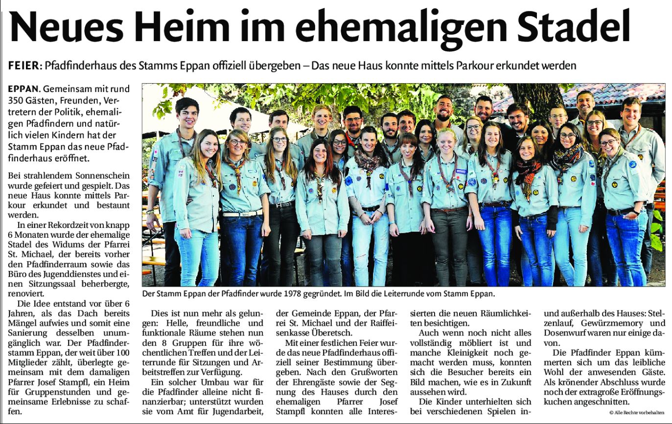 • Überetscher Gemeindeblatt - 21.10.2016 - "Einweihungsfeier des neuen Pfadihauses"