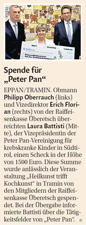 • Dolomiten - 05.05.2016 - "Spende für Peter Pan"