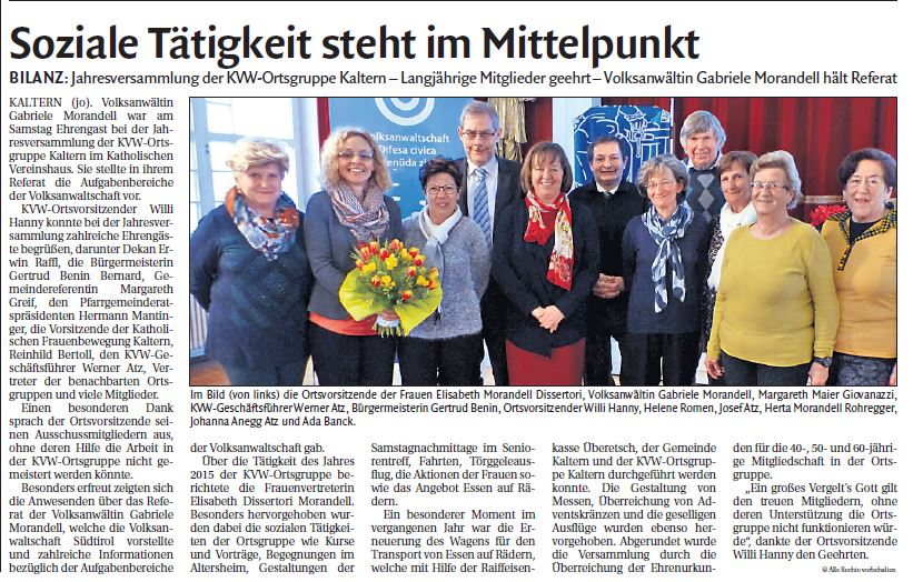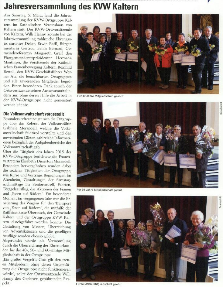 • Überetscher Gemeindeblatt - 18.03.2016 - "Jahresversammlung des KVW Kaltern"