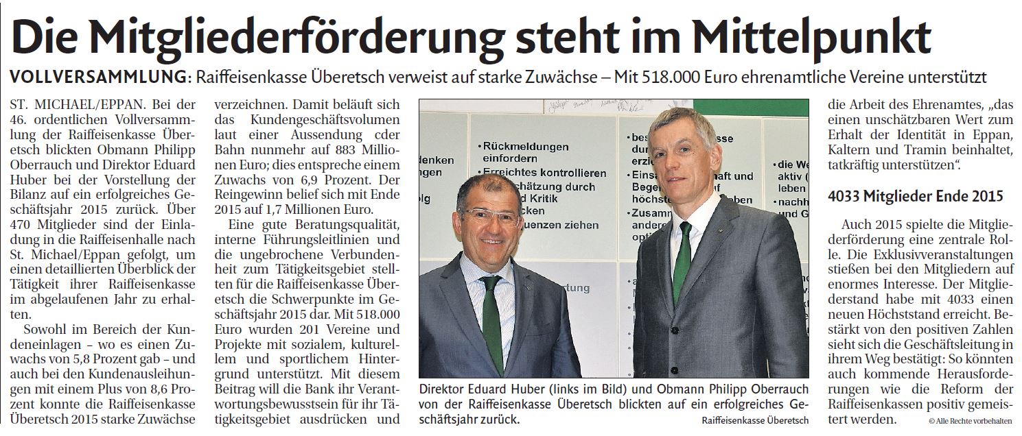 • Dolomiten - 19.04.2016 - "Die Mitgliederförderung steht im Mittelpunkt"