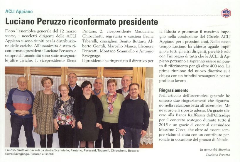 • Überetscher Gemeindeblatt - 01.04.2016 - "Luciano Peruzzo riconfermato presidente"