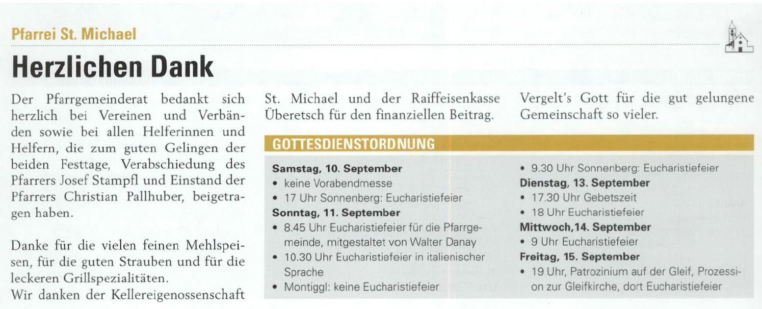 • Überetscher Gemeindeblatt - 09.09.2016 - "Herzlichen Dank"