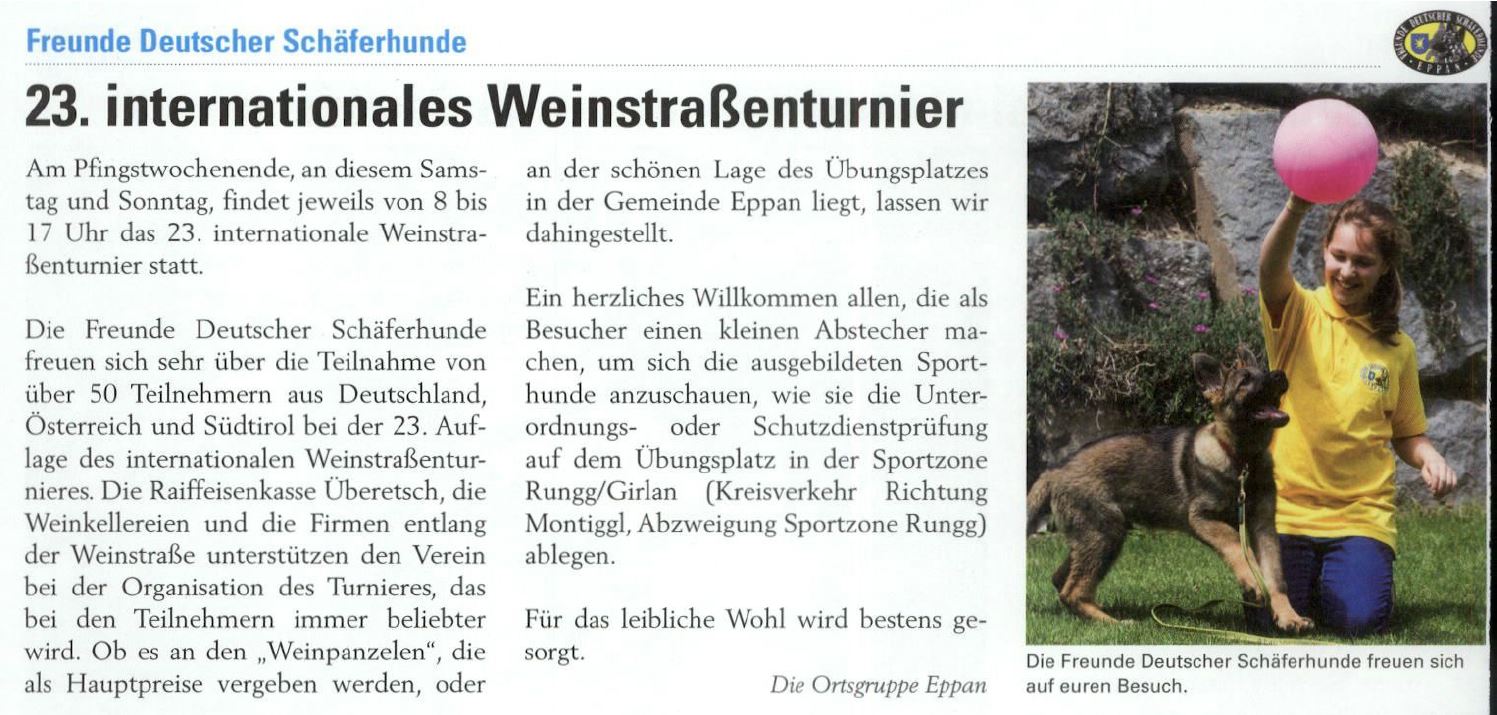 • Überetscher Gemeindeblatt - 13.05.2016 - "23. internationales Weinstraßenturnier"