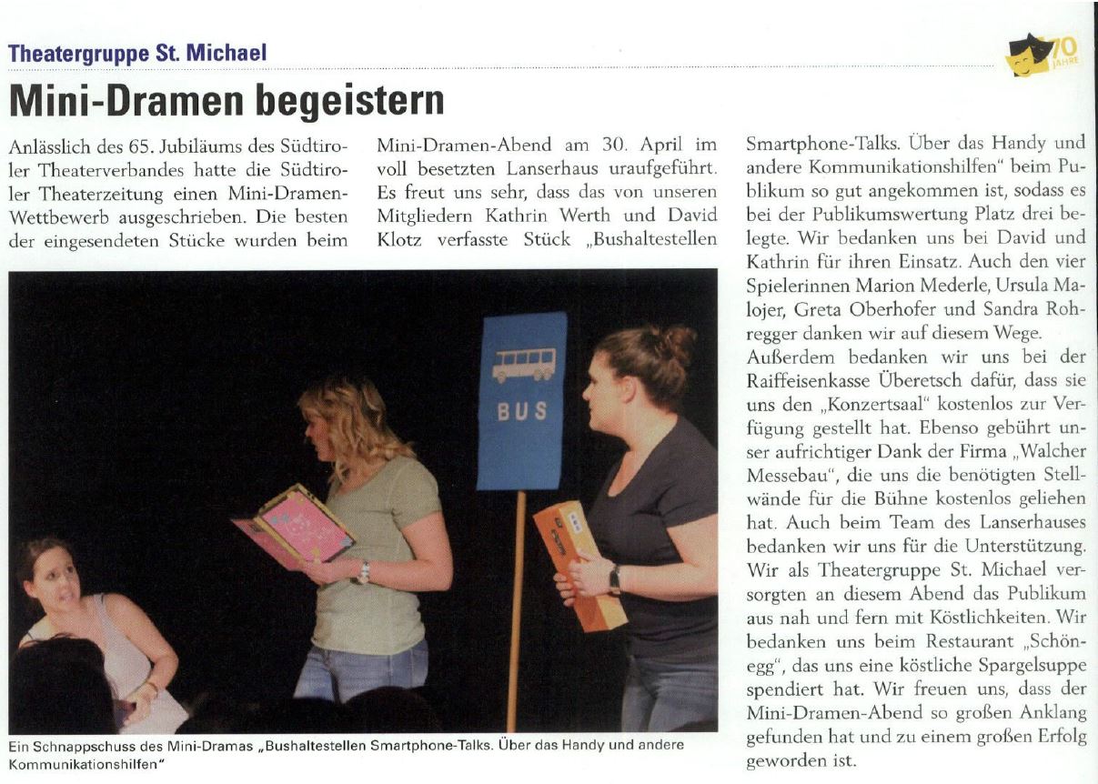 • Überetscher Gemeindeblatt - 13.05.2016 - "Mini-Dramen begeistern"