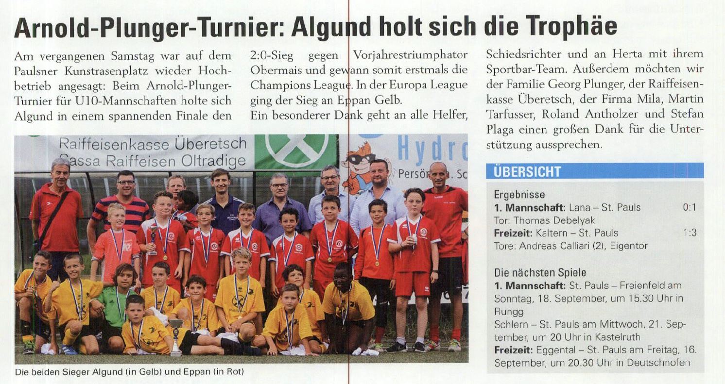 • Überetscher Gemeindeblatt - 16.09.2016 - "Arnold Plunger Turnier"