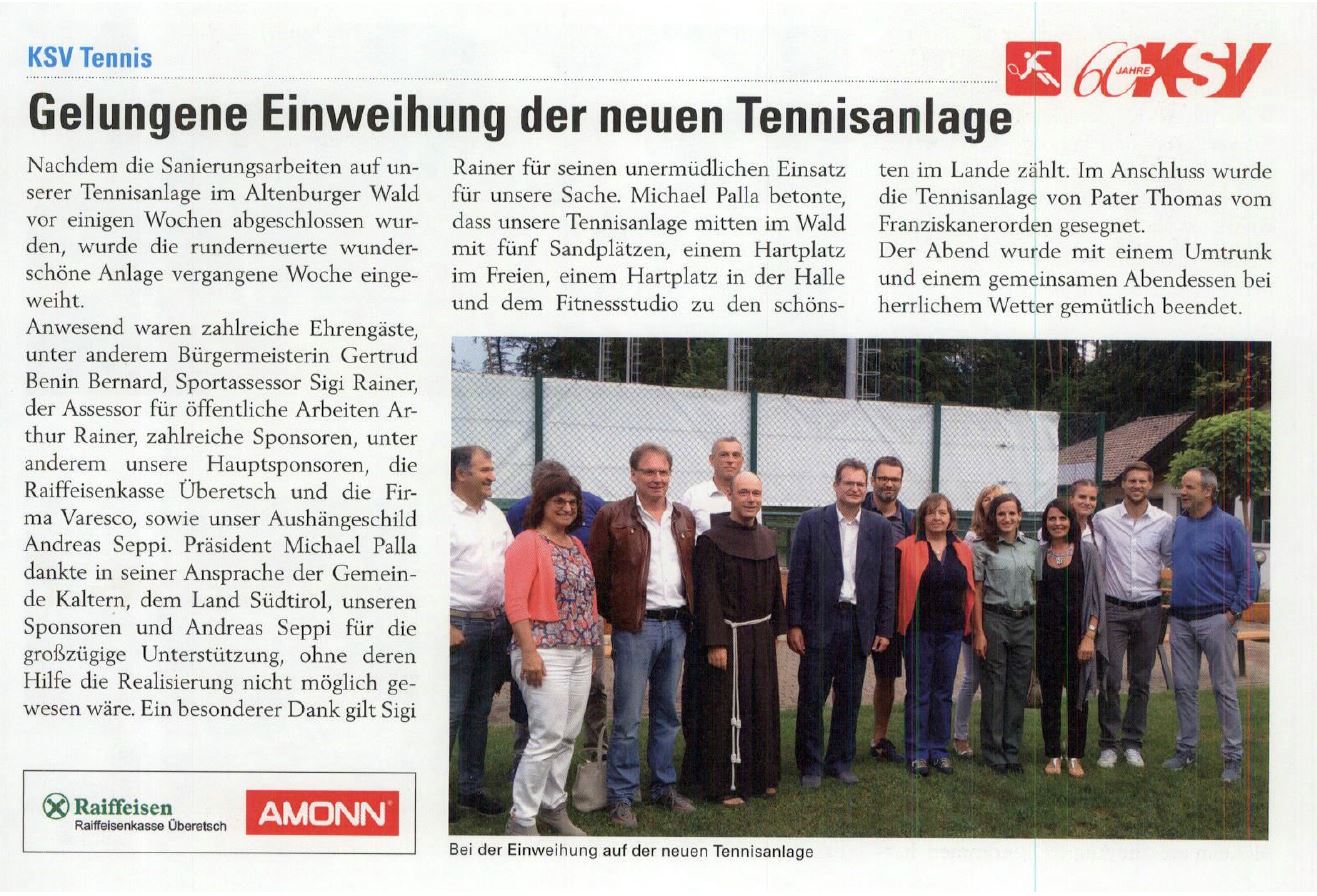 • Überetscher Gemeindeblatt - 19.08.2016 - "Gelungene Einweihung der neuen Tennisanlage"