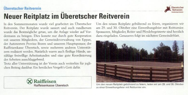 • Überetscher Gemeindeblatt - 21.10.2016 - "Neuer Reitplatz im Überetscher Reitverein"