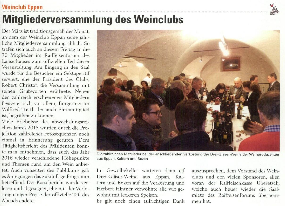 • Überetscher Gemeindeblatt - 25.03.2016 - "Mitgliederversammlung des Weinclubs"