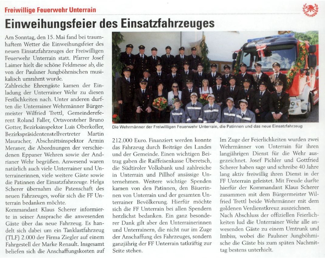 • Überetscher Gemeindeblatt - 27.05.2016 - "Einweihungsfeier des Einsatzfahrzeuges"