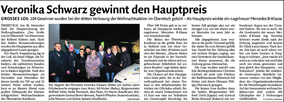 • Dolomiten - 04.01.2019 - "Veronika Schwarz gewinnt den Hauptpreis"