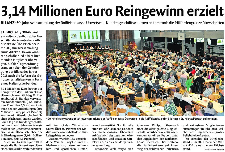 • Dolomiten - 16.04.2019 - "3,14 Millionen Euro Reingewinn erzielt"