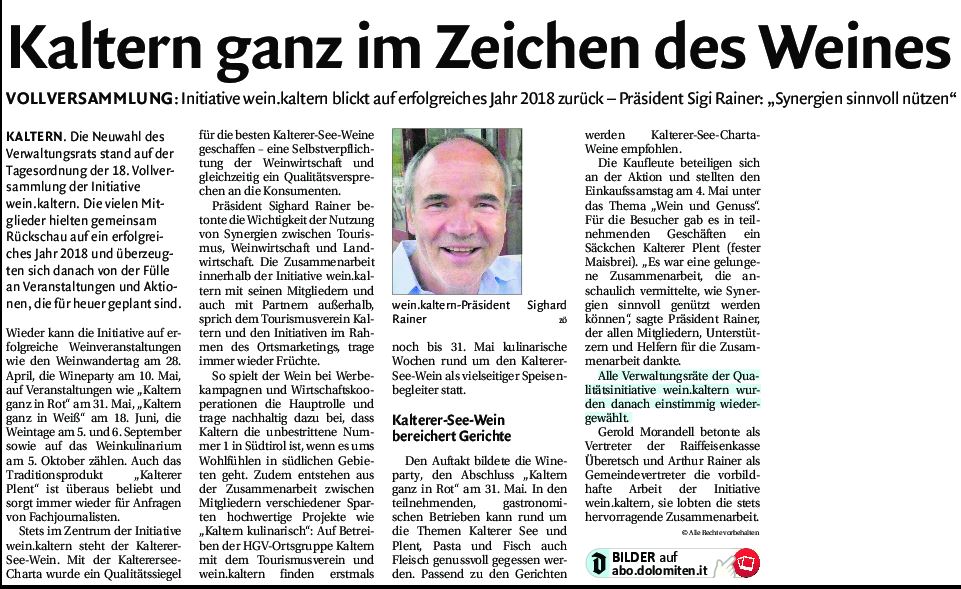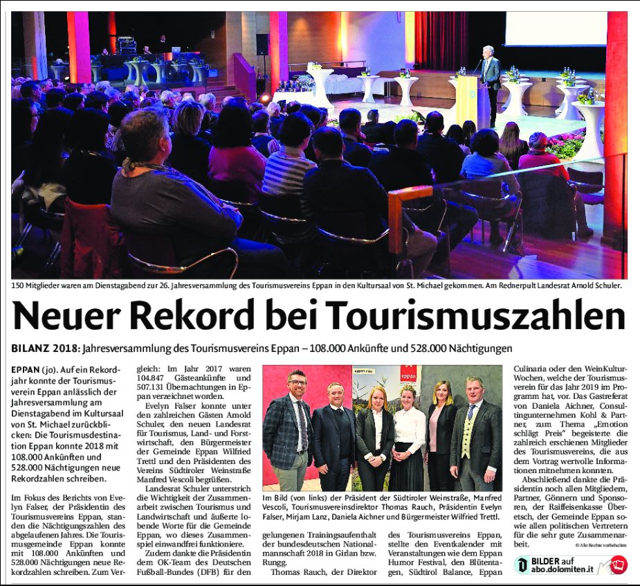 • Dolomiten - 05.04.2019 - "Rückblick auf die Jahreshauptversammlung"