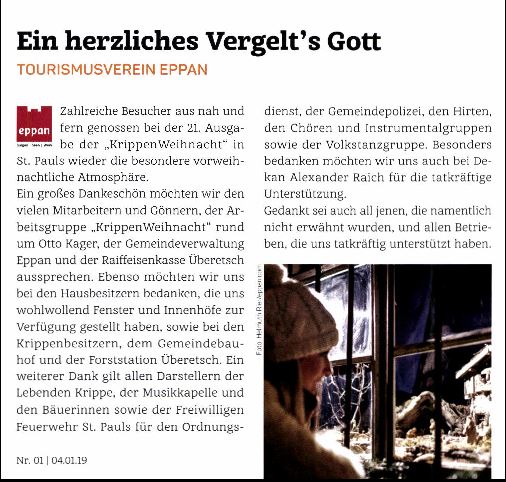 • Überetscher Gemeindeblatt - 04.01.2019 - "Ein großer Dank"