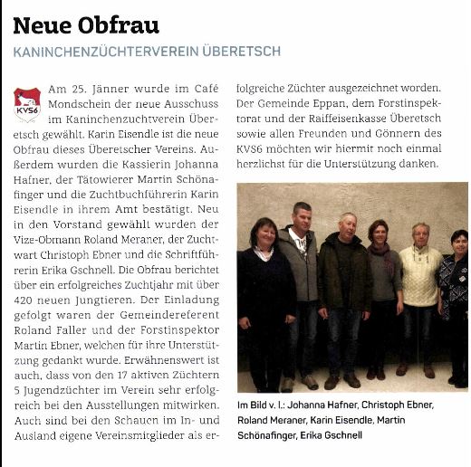 • Überetscher Gemeindeblatt - 15.02.2019 - "Drei Ehrenmitglieder und erste Zuchterfolge 2019"