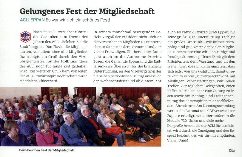 • Überetscher Gemeindeblatt - 12.04.2019 - "Gelungenes Fest der Mitgliedschaft"