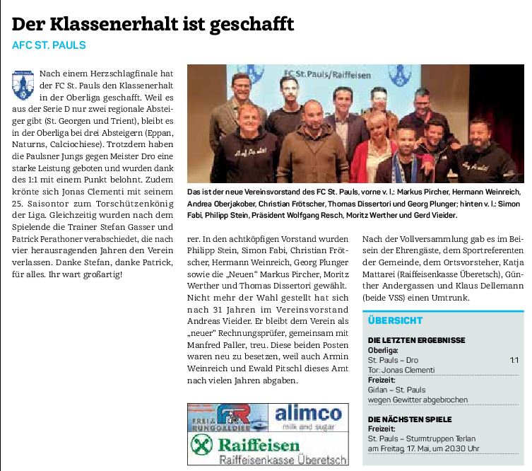 • Überetscher Gemeindeblatt - 17.05.2019 - "Der Klassenerhalt ist geschafft"