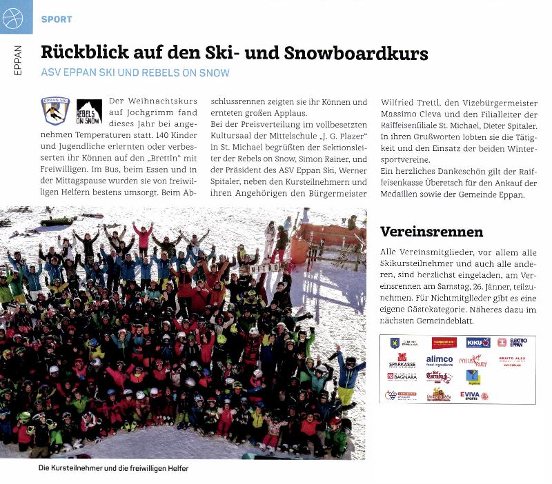 • Überetscher Gemeindeblatt - 18.01.2019 - "Rückblick auf den Ski- und Snowboardkurs"