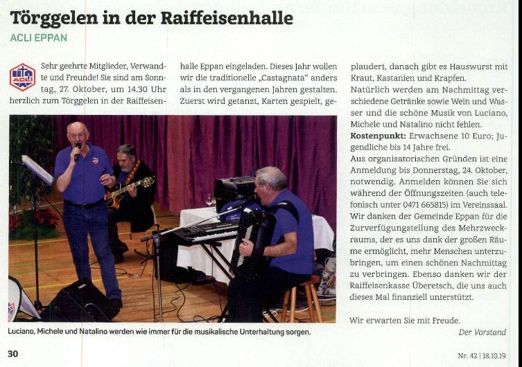 • Überetscher Gemeindeblatt - 18.10.2019 - "Törggelen in der Raiffeisenhalle"