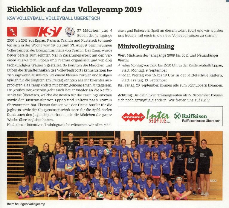 • Überetscher Gemeindeblatt - 30.08.2019 - "Rückblick auf das Volleycamp 2019"