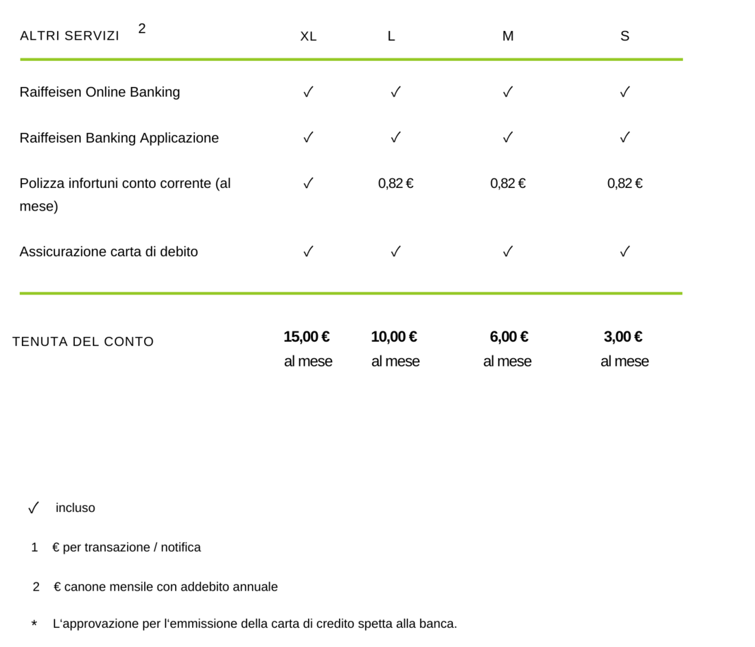 Il conto corrente Raiffeisen ha condizioni eque e trasparenti. Insieme al vostro consulente personale, potete individuare la tipologia di conto che fa al caso vostro.