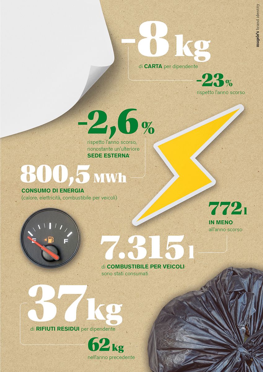 Attraverso il nostro impegno vogliamo migliorare la nostra impronta ambientale e a ridurre le emissioni in maniera graduale e costante. L'uso consapevole delle risorse e il ridotto consumo di energia hanno contribuito a una prima diminuzione dell'impatto ambientale nell'anno scorso e hanno dato slancio alla consapevolezza intorno ai temi della sostenibilità ambientale all’interno dell'azienda. Questo è il trend che vogliamo mantenere per il futuro.