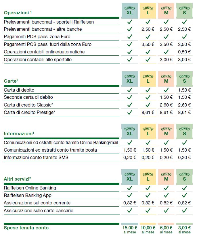 Le esigenze inerenti ad un conto privati sono molto individuali e diverse: fate più o meno operazioni, utilizzate Online Banking oppure fate movimenti allo sportello, preferite il pagamento dei singoli servizi o a forfait? Con i nostri nuovi conti a pacchetto è semplice trovare la soluzione giusta per voi. Potete scegliere tra quattro conti con diversi servizi inclusi. Ogni pacchetto - S, M, L o XL - comprende un conto affidabile con servizi su misura e costi definiti in modo semplice e la massima sicurezza. Come di consueto, vi offriamo tutti i servizi che una banca moderna prevede. Alcuni di questi sono inclusi nel pacchetto del vostro conto, mentre altri portano addirittura ad uno sconto sul canone annuale.