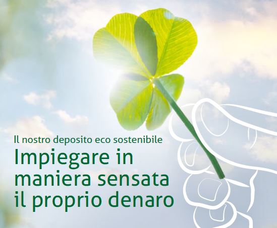 Il deposito eco sostenibile combina quattro strumenti d’investimento con orientamento etico, sociale ed ecologico.