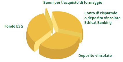 Il primo elemento è un prodotto di risparmio Ethical Banking, che consente di scegliere il progetto da sostenere con il proprio denaro, individuandolo tra le 7 linee di finanziamento disponibili. Rinunciando ad un elevato rendimento del capitale, avrete la possibilità di influenzare direttamente il tasso agevolato applicato al credito assegnato. Il secondo elemento è rappresentato da un deposito vincolato, che vi permetterà di fare sonni tranquilli: i vostri risparmi saranno infatti custoditi da una solida banca cooperativa, che si ispira ai principi di Raiffeisen e si impegna a favore della comunità locale. Per quanto riguarda il terzo elemento, si tratta di un fondo ESG, mentre il quarto, ed ultimo, è il più tangibile: consiste in buoni per l’acquisto di formaggi del caseificio Englhorn di Clusio.