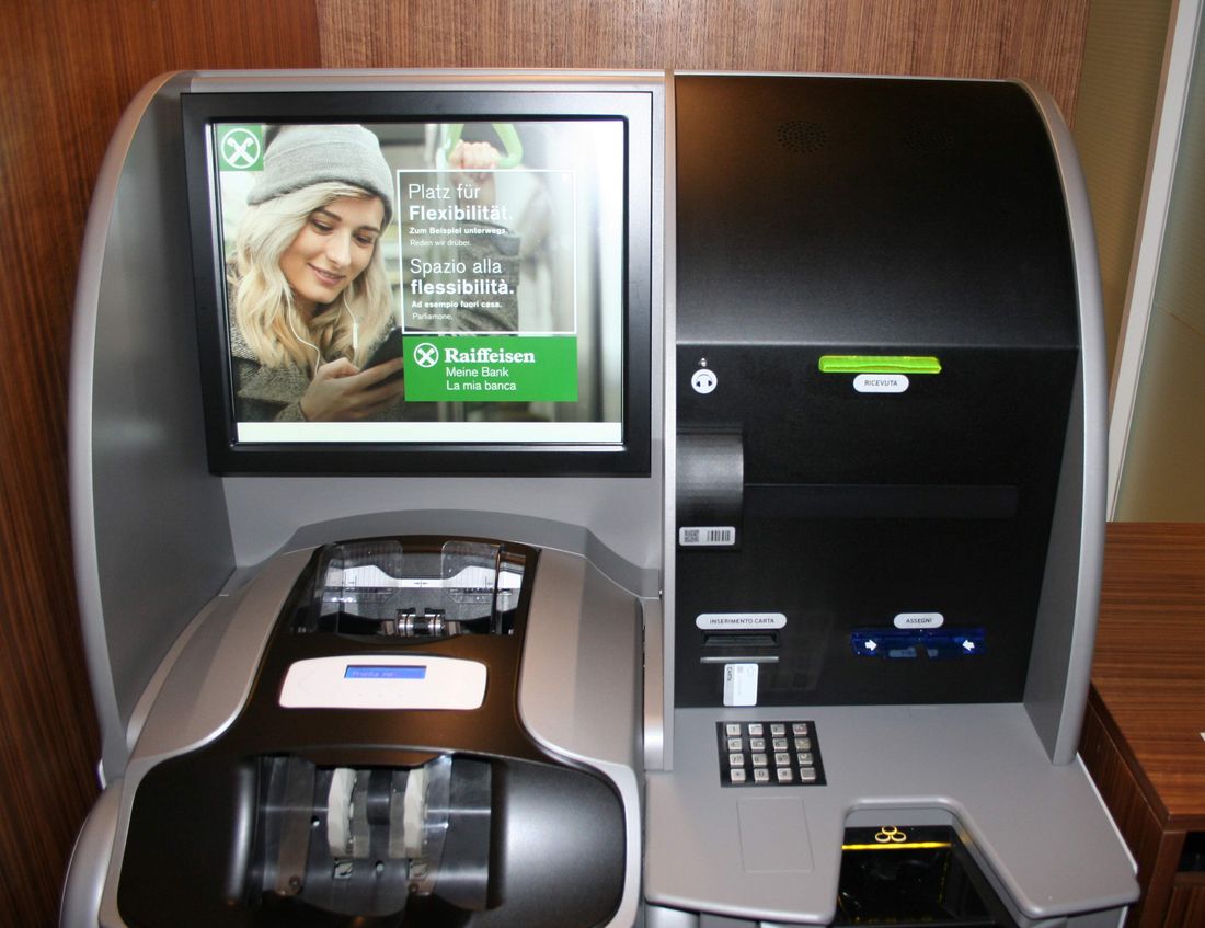 In tutte le filiali della Cassa Raiffeisen della Valle Isarco, dal lunedì alla domenica, dalle 6 alle 24, potete effettuare i vostri versamenti e prelievi in contanti ai dispositivi delle aree self-service, in tutta comodità e senza tempi di attesa allo sportello.